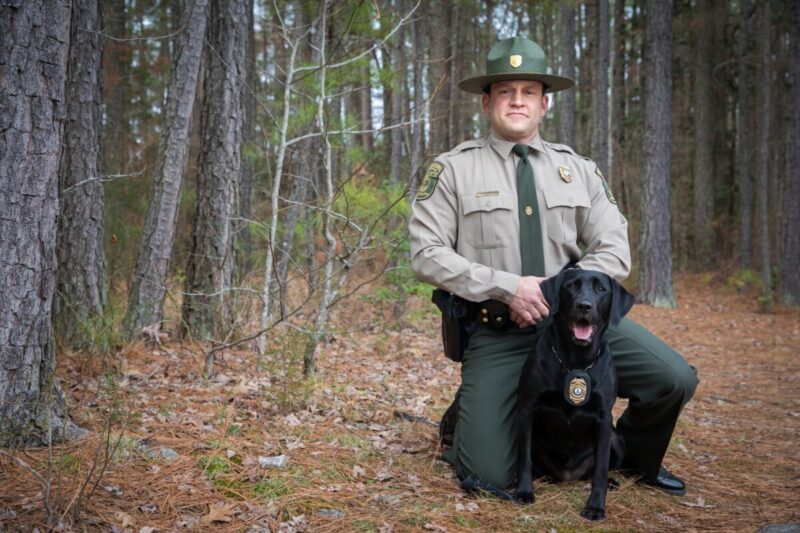 El oficial de policía de conservación Jim Patrillo y su compañero de K9 , Bailey.