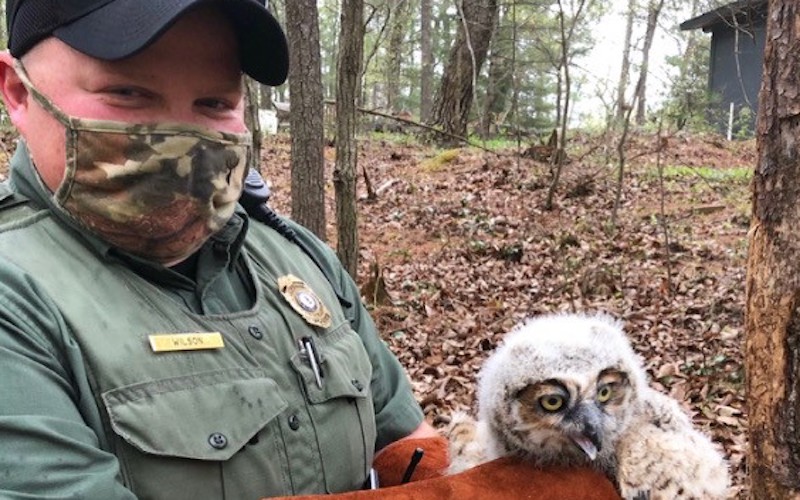 El oficial Shane Wilson, de la Policía de Conservación del DWR, ayudó en el intento de volver a anidar un gran búho juvenil en abril en Roanoke. Leer más...