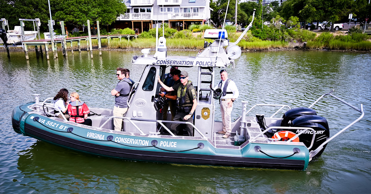 Los Oficiales de Policía de Conservación (CPO, por sus siglas en inglés) del DWR, junto con otras dos agencias, el Departamento de Conservación y Recreación de Virginia (DCR, por sus siglas en inglés) y la Comisión de Recursos Marinos de Virginia (VMRC, por sus siglas en inglés), presentaron recientemente una exhibición estática de los equipos y capacidades que cada agencia tiene a su cargo al Secretario de Recursos Naturales e Históricos y al Secretario de Seguridad Pública y su personal. También estuvo presente Andrew Wheeler, Jefe de la Oficina de Gestión Regulatoria. Varios otros invitados legislativos de Virginia estuvieron presentes junto con el Director Ejecutivo del DWR, Ryan Brown, y el Jefe de CPO, John Cobb, quienes dieron un discurso general del DWR y la División de Aplicación de la Ley de la Policía de Conservación de Virginia. La presentación tuvo lugar en el Parque Estatal First Landing en Virginia Beach.