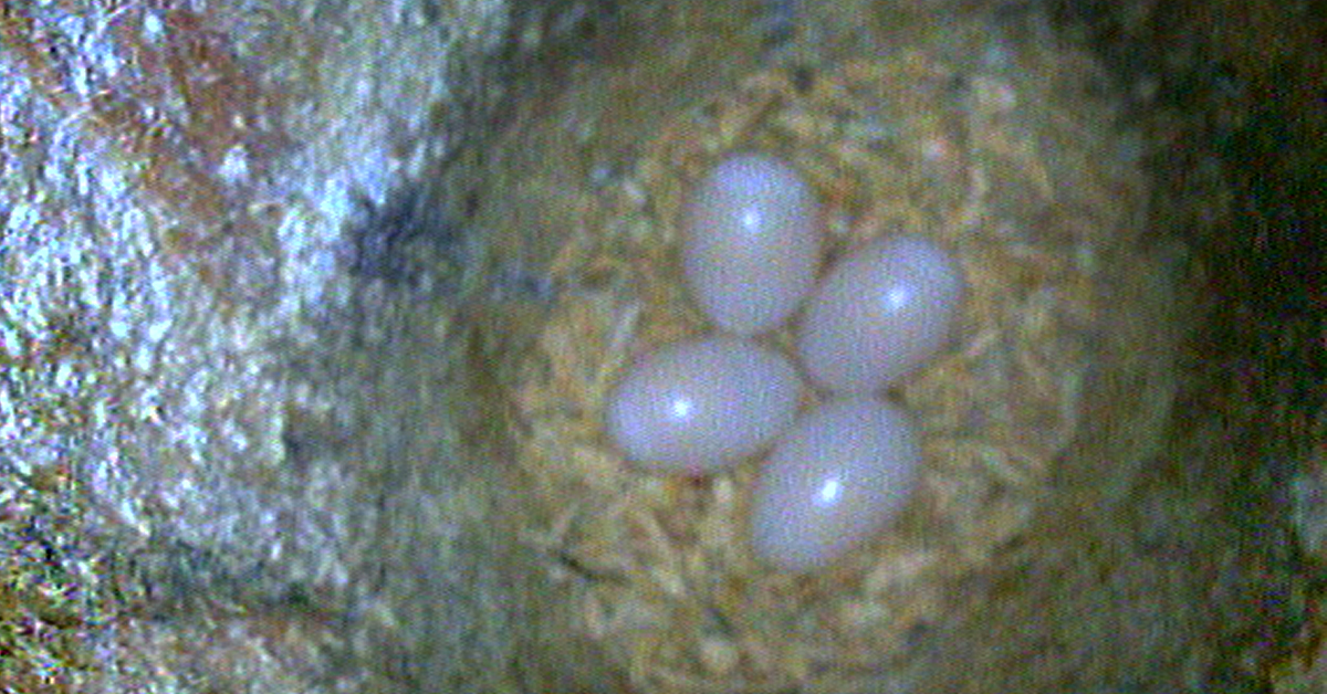 Los pájaros carpinteros de cresta roja son una especie en peligro de extinción a nivel federal, lo que hace que estos cuatro huevos sean particularmente especiales. Los huevos se encontraron durante una revisión del nido de la misma cavidad del árbol utilizada por la pareja de anidación del año pasado, que tenía dos huevos y produjo dos polluelos.
