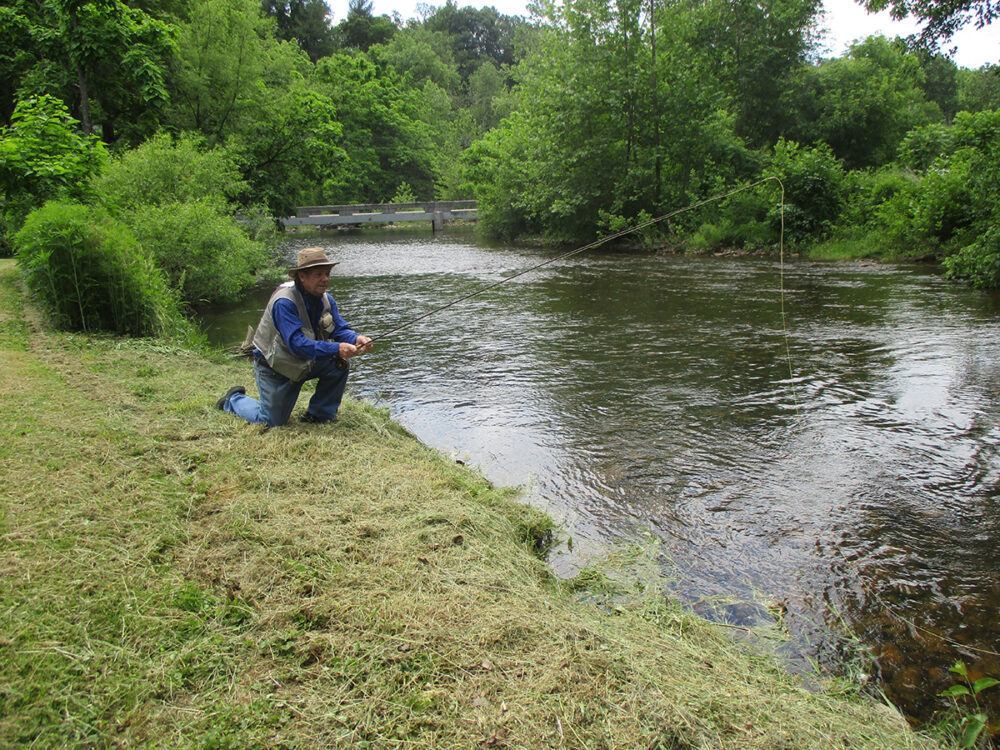 Lo bueno de la pesca terrestre es que los insectos terrestres están constantemente goteando en el agua, por lo que las truchas se alimentan de ellos a cualquier hora del día, a diferencia de una eclosión de efímeras que puede agitarse alimentándose durante una o dos horas y luego terminar. Con los insectos terrestres, puede llegar al arroyo cuando lo desee y esperar una pesca constante.