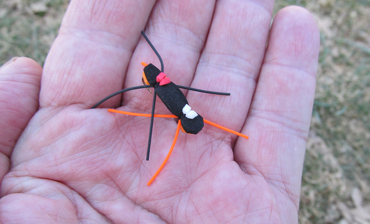Se han identificado más de un millón de especies de insectos terrestres, superando en número a los insectos acuáticos en 20 a 1. Pero no te preocupes. Solo necesita unas pocas imitaciones comprobadas de insectos terrestres en sus cajas de moscas para tener éxito en la pesca terrestre. Tres de los principales para almacenar son los saltamontes, las hormigas y los escarabajos. Agregue grillos, saltahojas y gusanos de pulgada si desea expandir la lista.