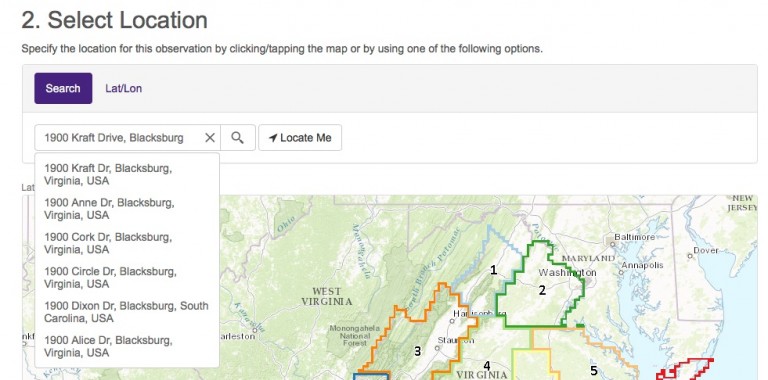 - Seleccione las especies observadas, que se enumeran en orden taxonómico. Nota: solo puede ingresar una especie a la vez.