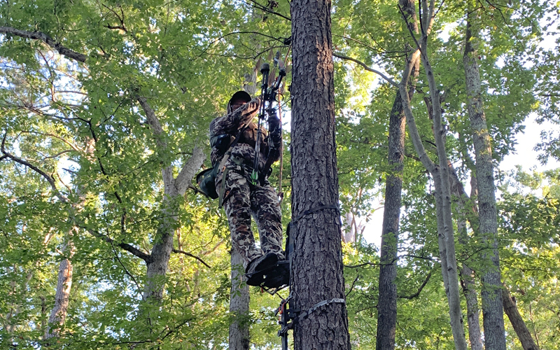 Hay absolutamente una curva de aprendizaje asociada con la caza en silla de montar. Tanto el ascenso como el descenso requieren práctica. Empecé viendo vídeos de YouTube sobre cómo otros cazadores subían y bajaban de los árboles y luego llevé esos aprendizajes al campo. He descubierto que crear un sistema, mantener todo el equipo de escalada en el mismo lugar cada vez y practicar son cruciales para subir al árbol de forma segura y silenciosa.