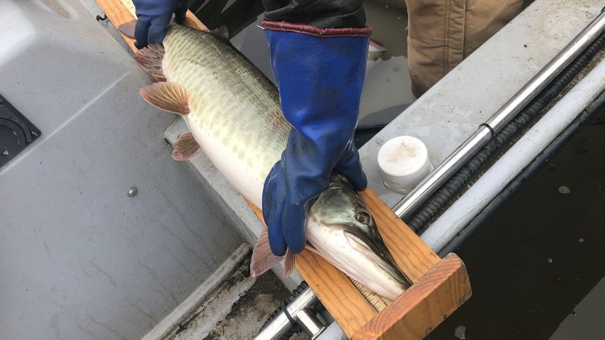 Los investigadores implantaron quirúrgicamente muskellunge de entre 26 y 46 pulgadas de largo con etiquetas de radio codificadas individualmente en febrero-marzo de 2020 (N = 45) y 2021 (N = 50) para que pudiéramos rastrear y monitorear el destino de todos los peces marcados. También colocamos etiquetas de bucle externo a los peces marcados con radio para que cualquiera que atrapara un pez marcado con radio pudiera informarlo y recibir una recompensa de $50 .