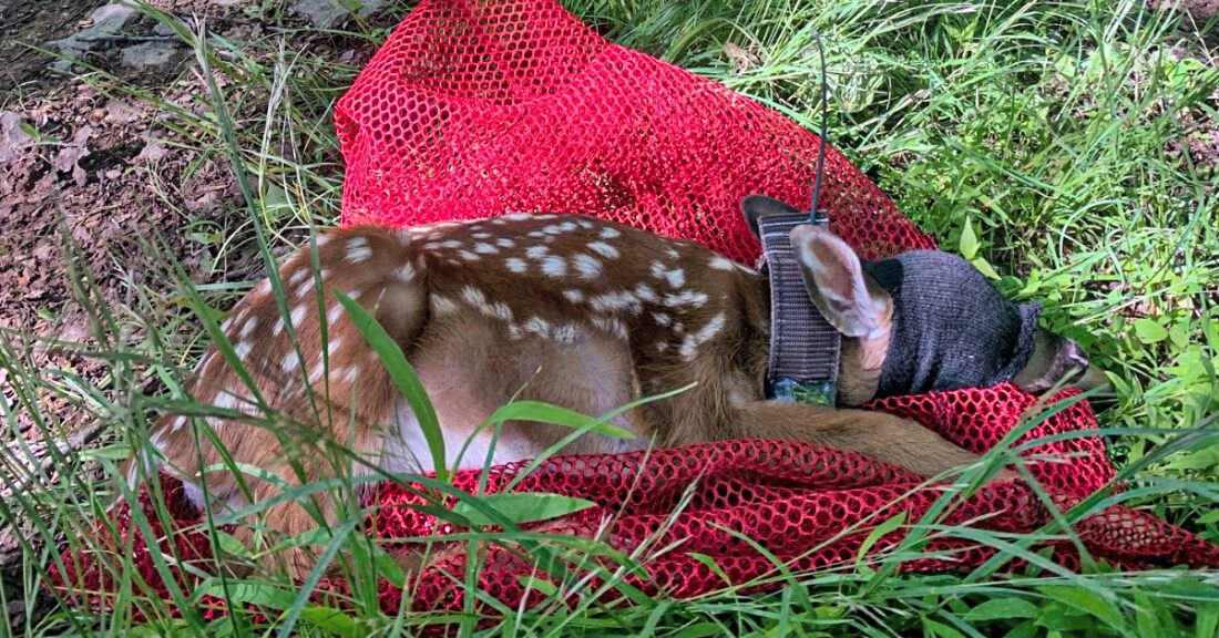 Un cervatillo recién puesto capturado en la Reserva Natural de la Montaña Warm Springs. A menudo, los cervatillos se encontraban muy cerca de los caminos de tierra en los sitios de estudio de mayor elevación.
