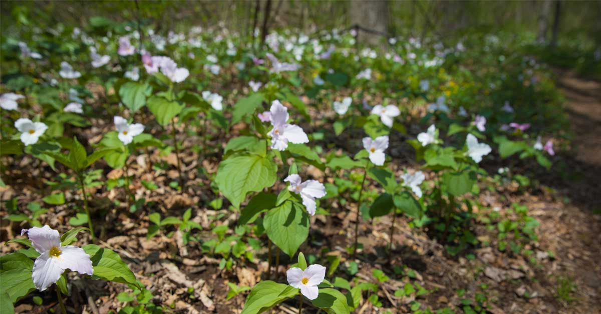 Una gran diversidad de otras especies de flores silvestres que interesarán al naturalista también se encuentran en toda la zona. Por ejemplo, a mediados de abril (antes de la floración del trillium) se puede observar una bonita exhibición de raíz de sangre, lirios de trucha y calzones de holandés floreciendo en grandes cantidades en todo el bosque. Durante el resto de la primavera y hasta principios del verano, se puede ver en flor una gran cantidad de otras especies interesantes de plantas forestales ricas, como el cohosh negro y los lirios de Canadá.