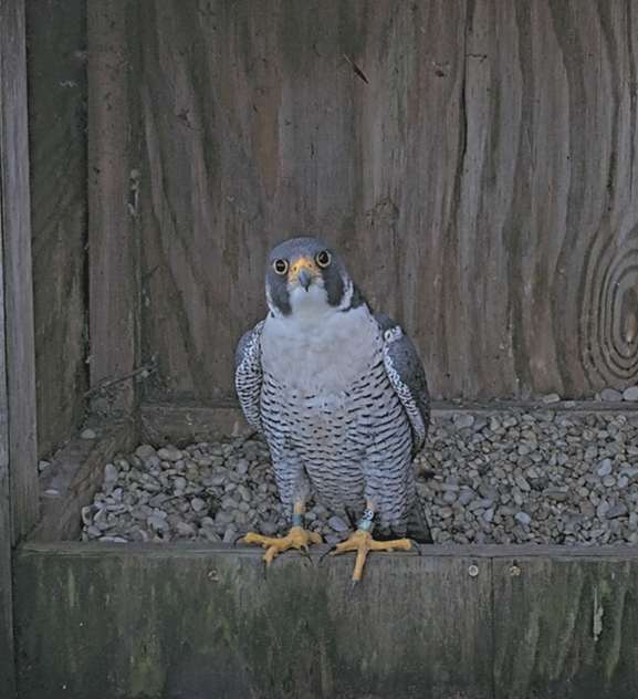 Bienvenidos a la 2026 temporada de la Richmond Falcon Cam, presentada por el Departamento de Recursos de Vida Silvestre de Virginia y Comcast Business, que estuvo proporcionando Internet para la cámara desde 2017. Nos alegra informar que la temporada está comenzando con la pareja de halcones favorita de todos, 95/AK (hembra) y 59/BM (macho), apareciendo de manera regular y a diario ante la cámara. Vimos muchos comportamientos de cortejo por parte del dúo, con 59/BM que se ven de manera regularanillo de presas para 95/AK, invitándola a entrar en la caja nido, cavando el raspado (una depresión en la grava que sirve de nido), y muchas reverencias bajas entre nosotros. Te invitamos a seguirnos mientras cubrimos los acontecimientos de lo que, con suerte, será la 6exitosa temporada de anidación de la pareja.