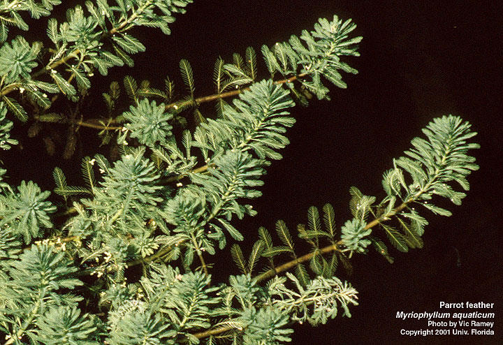 Esta planta exótica es originaria de América del Sur. Los tallos son rojos o anaranjados. Las hojas están en verticilos de 3-6, 1/2 a 2 pulgadas de largo y 1/2 pulgadas de ancho. Las hojas parecen plumosas y se dividen en segmentos estrechos.