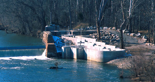- 1995 – El Departamento de Ingeniería Hidráulica del Servicio de Pesca y Vida Silvestre de EE. UU. proporcionó planos conceptuales; ingeniería y diseño final completados por J.K. Timmons and Associates (ahora Timmons Group).