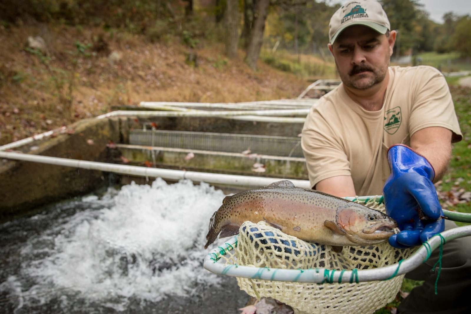 A diferencia de las demás criaderas DWR, Montebello no incuba ningún pez, pero desempeña un papel esencial como estación de cría para peces jóvenes. DWR trae a Montebello truchas de arroyo con alelines, brown y rainbow que nacieron en criaderos de aguas frías del DWR. Estos peces se crían hasta que son lo suficientemente grandes como para ser repoblados en aguas del lado este de las montañas Blue Ridge. Montebello alberga 23 ríos y lagos desde el condado de Amherst hacia el norte hasta el condado de Fairfax, además de seis lagos, estanques y un arroyo en localidades urbanas. Montebello normalmente repoblación 100,000 a 150,000 truchas al año.