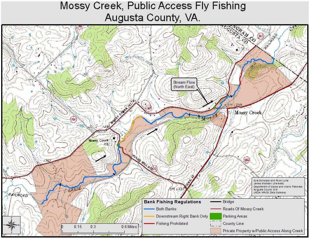 Una porción de 4millas de arroyo aguas arriba desde la línea del condado de Augusta / Rockingham hasta un letrero colocado en la confluencia de Joseph's Spring. El arroyo se encuentra justo al lado de la Ruta 42 al sur de Bridgewater. La pesca está restringida solo a la pesca con mosca y se requiere un permiso de propietario por escrito para pescar en estas aguas. Se puede obtener un permiso sin costo en el sitio web Go Outdoors Virginia de DWR.