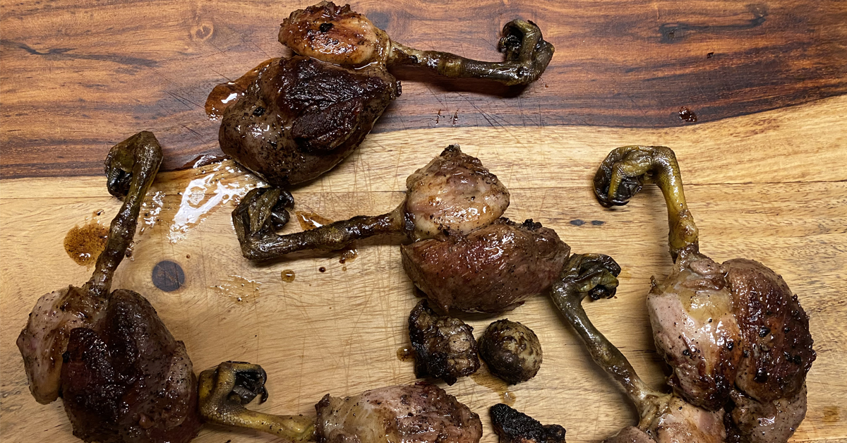 Aquí hay una receta de tres ingredientes que se me ocurrió hace un par de años. Si está sirviendo a personas con estómagos "delicados", le quitaría los pies. De lo contrario, conservo los pies porque me recuerda que fue un ser vivo en un momento dado, y es un gran mango.