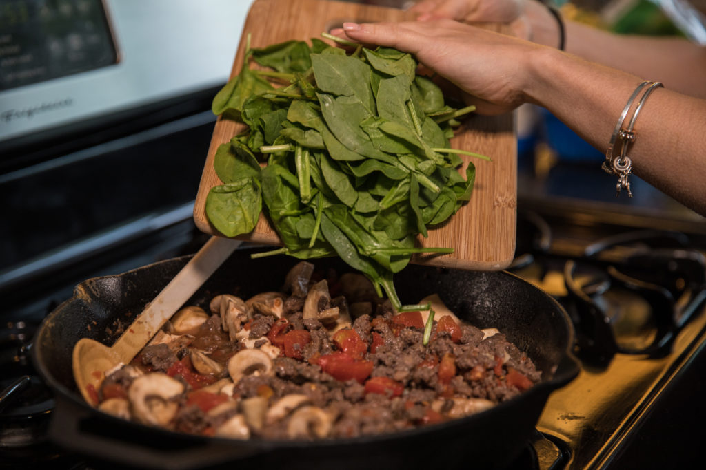 - Agregue las espinacas y revuelva hasta que se combinen.
