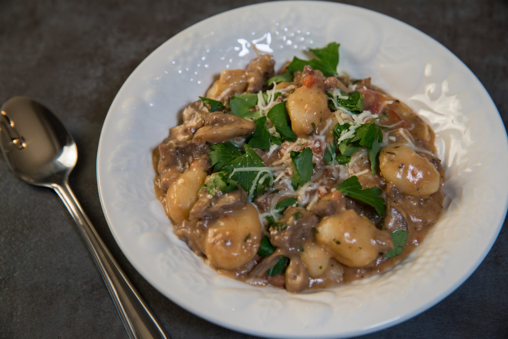 La receta tradicional requiere salchicha italiana, pero siempre que puedo sustituir la carne comprada en la tienda por carne de caza silvestre, lo hago. No creo que haya nada más divertido que ser creativo con la caza salvaje. Esta es una receta clásica, de domingo por la noche, comida reconfortante, que se pega a las costillas. Lo que lo hace sabroso es el caldo de pollo, los ñoquis cocidos y las especias y la carne que hierven a fuego lento con el queso. Sin excepción, si te encanta el queso, esta receta es para ti. Además, si está buscando eliminar los carbohidratos procesados como la pasta, los ñoquis son una excelente alternativa.