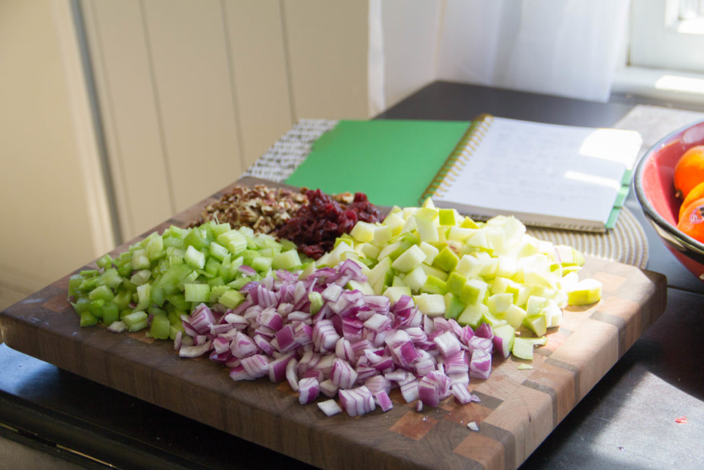 - Mientras hierven las pechugas, pica todos los ingredientes y reserva.