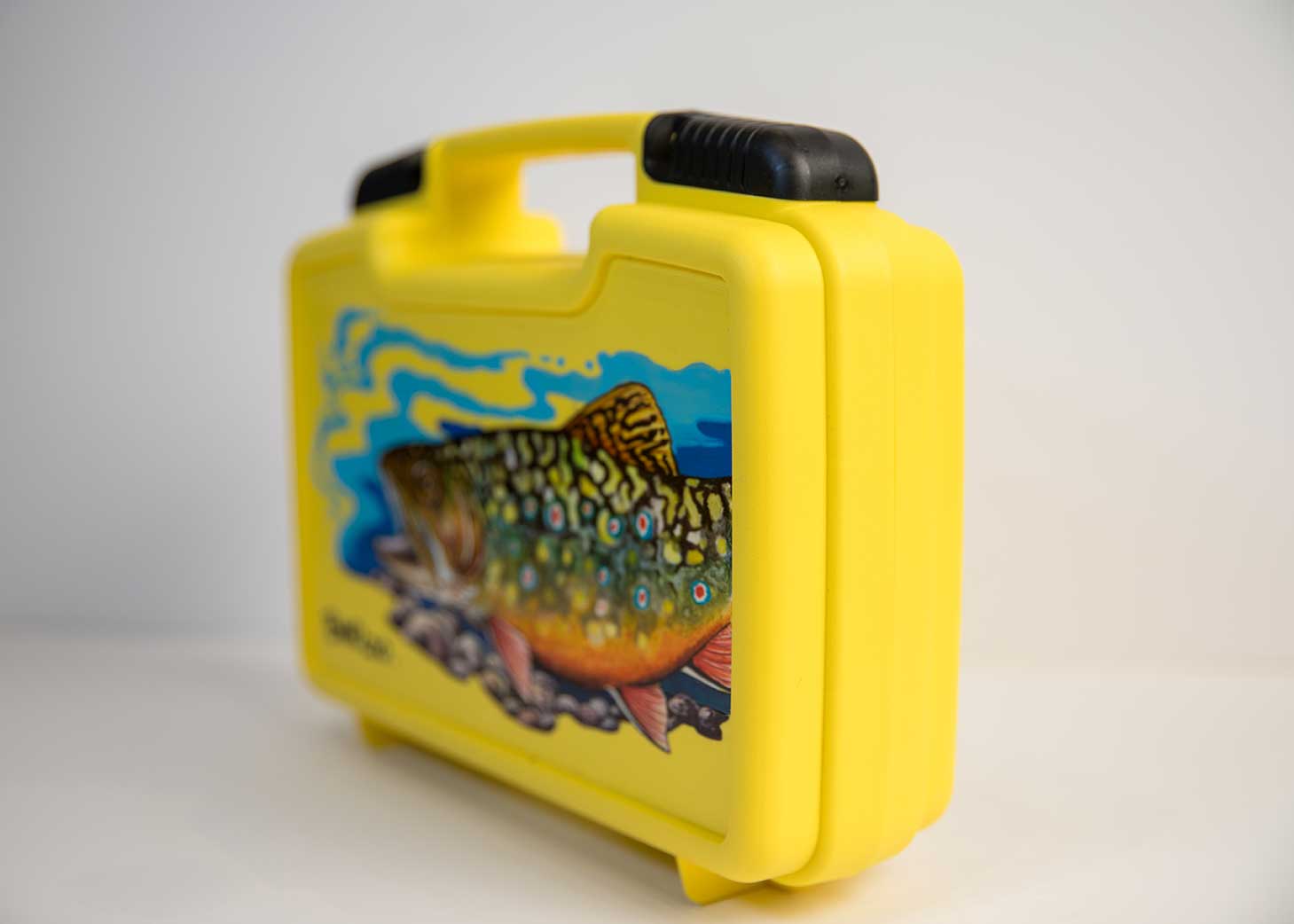 Los pescadores saben que las cajas para moscas de Cliff Outdoors son lo último en protección impermeable para sus aparejos. ¡Ahora da un paso más allá con obras de arte únicas pintadas a mano del pescador y artista local, Mike Rennie de Blue Mountain Drift!