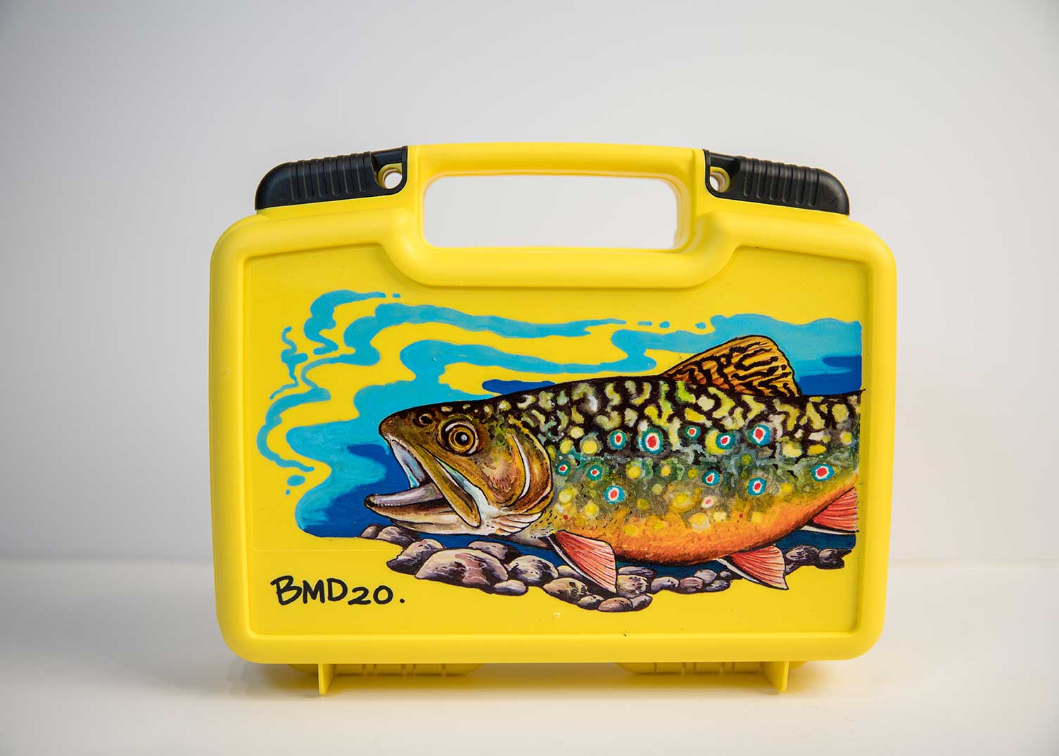 Los pescadores saben que las cajas para moscas de Cliff Outdoors son lo último en protección impermeable para sus aparejos. ¡Ahora da un paso más allá con obras de arte únicas pintadas a mano del pescador y artista local, Mike Rennie de Blue Mountain Drift!