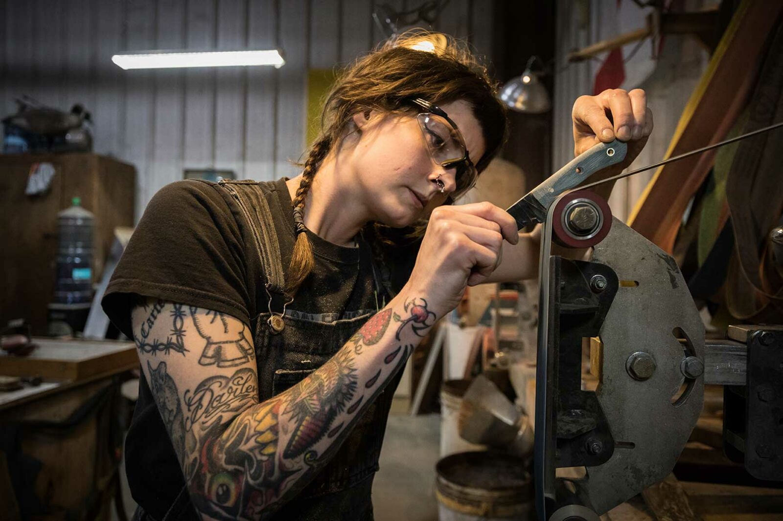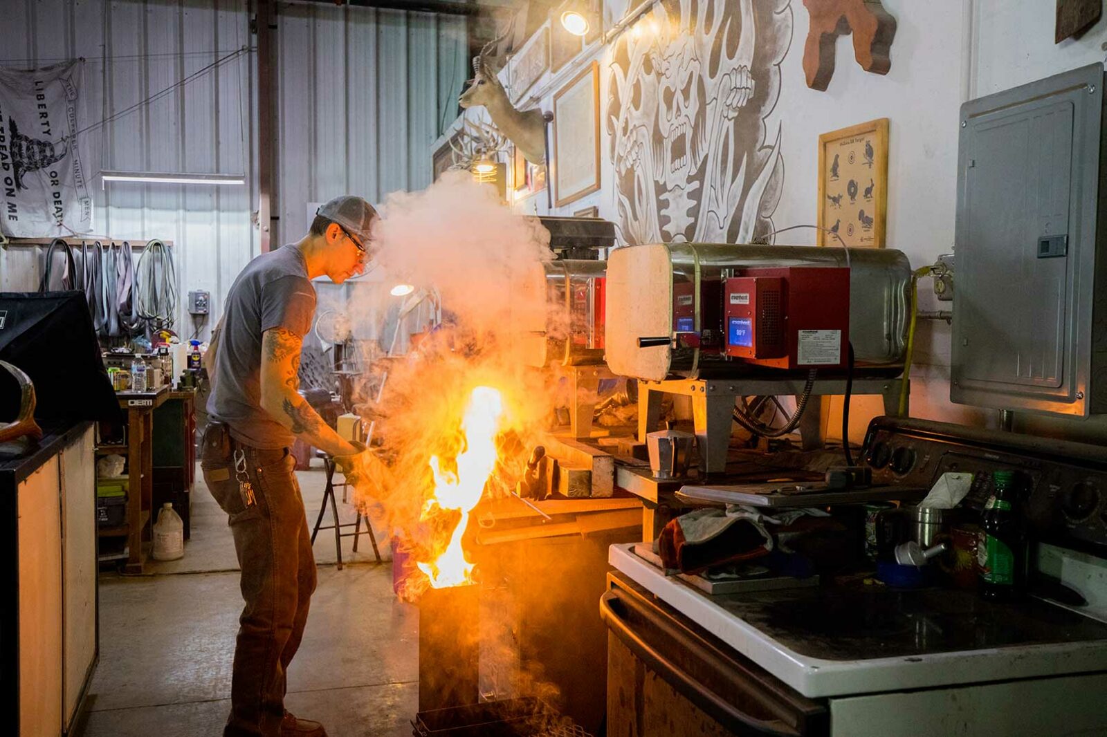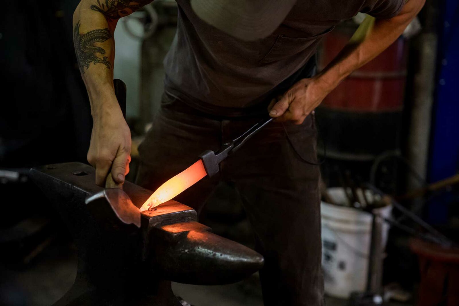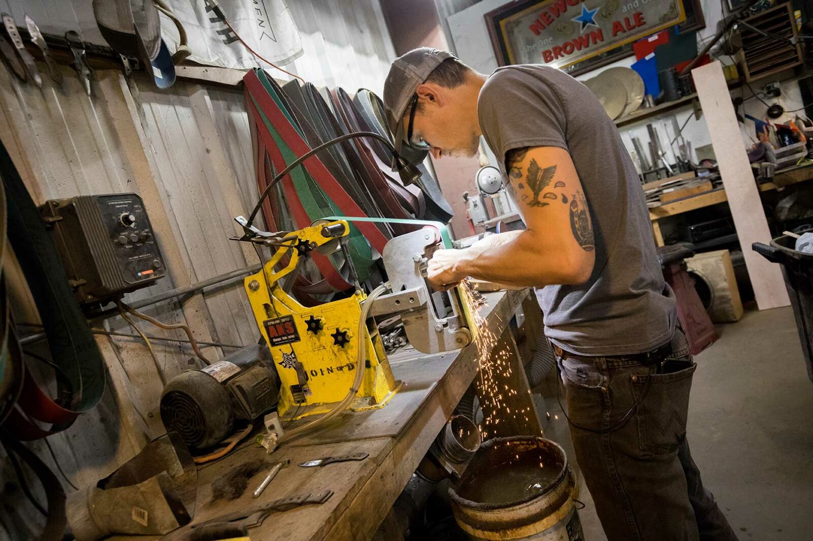 "Todos nuestros cuchillos y fundas están fabricados en Richmond con materiales de primera calidad. Realizamos todo el tratamiento térmico en casa y fabricamos nuestra propia especialidad en acero de Damasco".