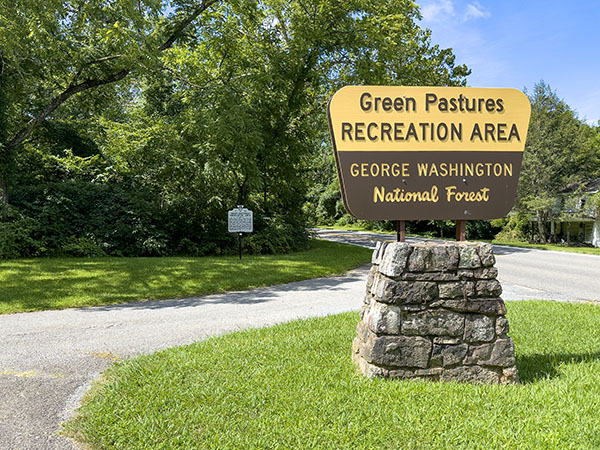 Desde Clifton Forge, diríjase hacia el este por US-60 Business E / Main St,gire ala derecha en SR-632/ Longdale Furnace Rd, continúeen VA-269 E / Longdale Furnace Rd,gire a la derecha en F271/Tri County Rd, gire ligeramente a la derecha en Green Pasture Trail y siga hasta el área de estacionamiento.