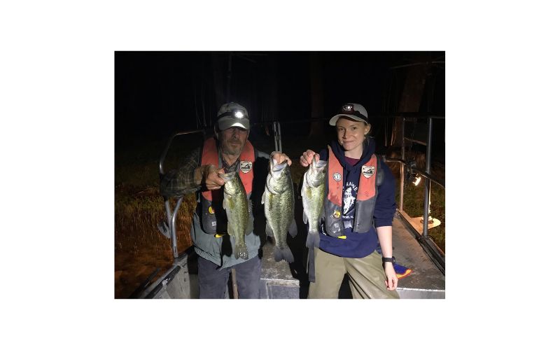 La población de lobina negra se ha mantenido constante durante los últimos años. Históricamente, el lago Arrowhead tenía una alta densidad de lubinas pequeñas. Las densidades de lubinas se han simplificado y el número de peces de más de 12 pulgadas ha mejorado significativamente. La regulación actual de la ranura de 11-16 pulgadas para los graves parece estar actuando como un límite de tamaño mínimo de 16pulgadas. Los biólogos recolectaron solo unas pocas lubinas de más de 16 pulgadas en muestras recientes. La lubina de boca grande es de crecimiento lento en el lago Arrowhead y los peces no alcanzan 1112 pulgadas hasta 4de edad. Con estas tasas de crecimiento lentas, los pescadores necesitan cosechar algunas lubinas de menos de 11 pulgadas para que el límite de la ranura tenga éxito en la producción de lubinas de más de 16 pulgadas. Los pescadores deben concentrarse en los árboles caídos, las cabañas de castores y los bordes de los lechos de malezas cuando se dirijan a la lubina. El lago Arrowhead puede volverse bastante claro, por lo que los pescadores deben usar cebos / tácticas para que coincidan con las condiciones.