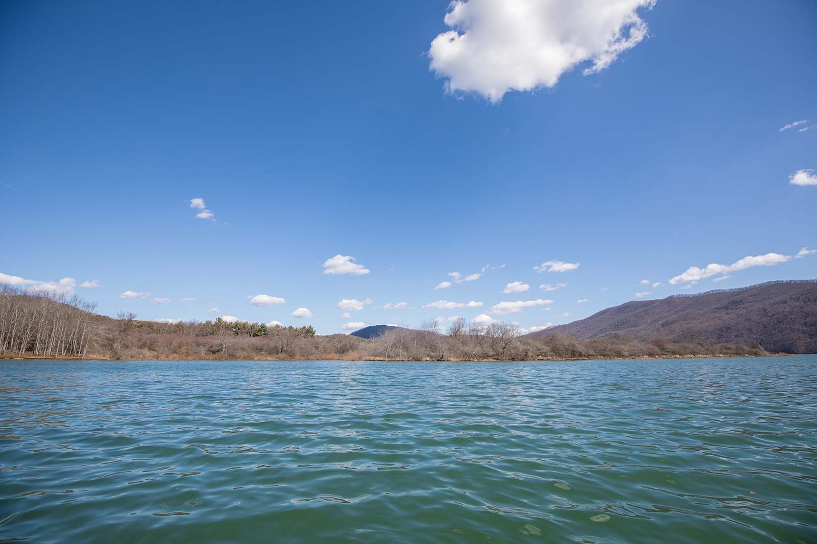 Dos tipos de lubina negra, la lubina de boca pequeña y la lubina de boca grande, ocupan actualmente las aguas del lago Moomaw. La lubina de boca pequeña, presente en el río antes de que se formara el lago, ha prosperado a lo largo de las costas rocosas y los acantilados escarpados (particularmente sobre McClintic Point y alrededor de Coles Point). Las bocas pequeñas se pueden encontrar en las profundidades (25 pies) en el lago durante el verano y el invierno, y se mueven a lo largo de las aguas poco profundas en primavera y otoño, buscando alimento y hábitat de desove. La lubina negra prefiere las numerosas llanuras poco profundas en el centro del lago, particularmente alrededor de Greenwood Point, la playa para nadar y las islas. Intente taponar o mover alrededor de áreas con maleza, lechos de carreteras viejos y lechos de césped en 8-10 pies de agua para obtener mejores resultados de lobina negra.
