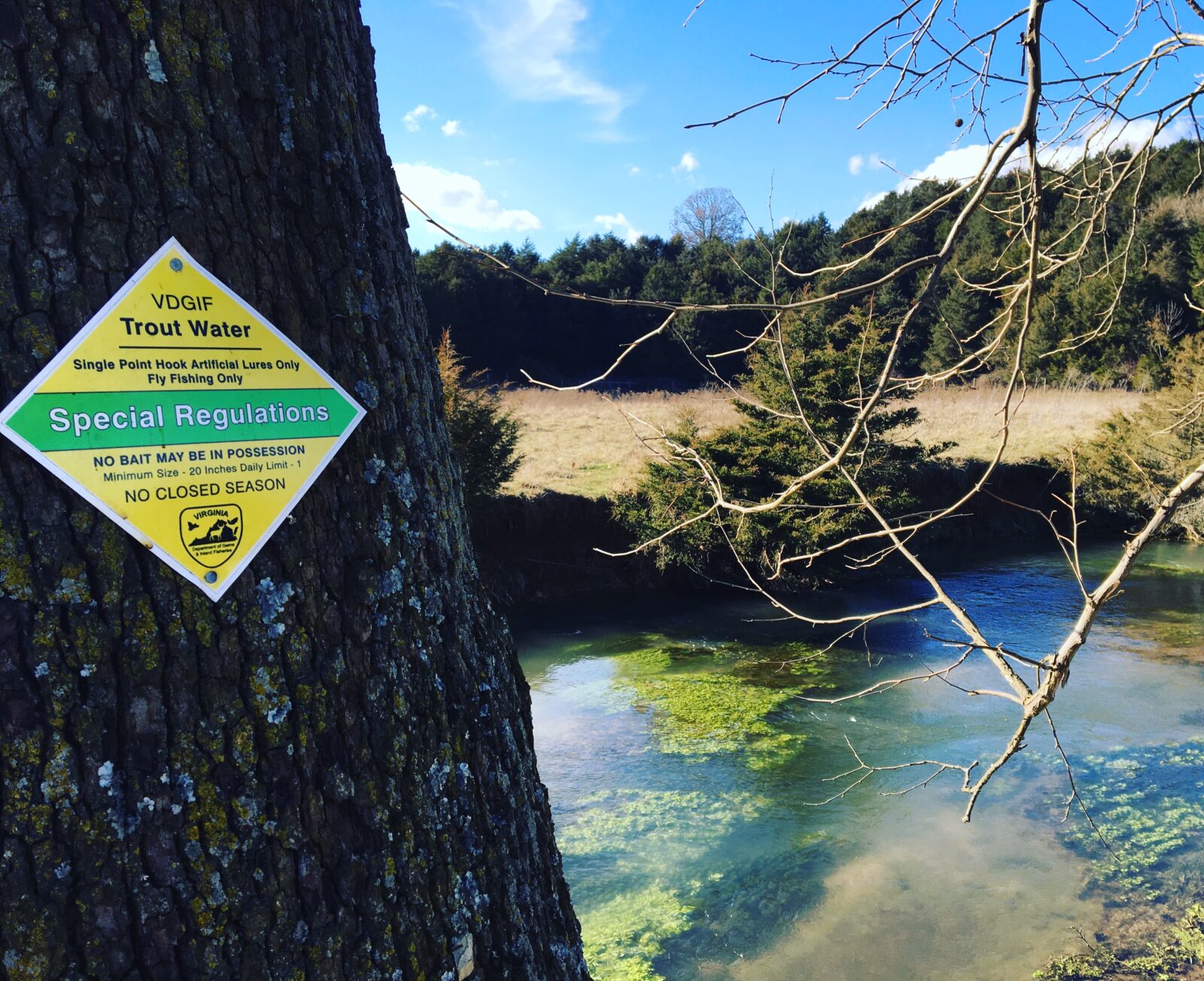 Mossy Creek es un excelente destino de pesca con mosca en invierno debido a los flujos estables y las temperaturas más cálidas del agua de los manantiales de piedra caliza.