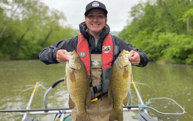El pez deportivo más buscado en el río North Fork Shenandoah es la lubina de boca pequeña. Las densidades de boca pequeña son altas y los pescadores pueden experimentar tasas de captura que promedian 1.2 bajo por hora. Los biólogos pesqueros consideran que una tasa de captura superior a un pez por hora es muy buena. Los pescadores experimentados pueden experimentar capturas de 50+ boca chica en un día de pesca. Recuerde que el éxito de la pesca puede variar dependiendo de las condiciones ambientales. La tasa de mortalidad natural de boca chica en North Fork es alta y la captura por parte de los pescadores es baja, según la investigación realizada por biólogos. Por lo tanto, la población de lubina de boca pequeña está influenciada principalmente por las condiciones ambientales (inundación/sequía). Los años en los que hay un desove muy exitoso producen una fuerte "clase anual" de lubina. Estas fuertes clases anuales son las que hacen que la pesca sea favorable. Cuando una o dos clases fuertes de lubinas alcanzan los tamaños que prefieren los pescadores, la pesca puede considerarse excelente. Sin embargo, cuando las clases anuales débiles son producidas por variables ambientales, el éxito de la pesca puede ser pobre. En la actualidad, hay varias clases anuales de lubina que se reclutan en la pesquería de North Fork. Debería haber un buen número de lubinas de boca pequeña de tamaño de calidad disponibles para los pescadores en 2002-2003. Los pescadores encontrarán bocas pequeñas en todos los hábitats del río. Una de las áreas más productivas para encontrar boca chica es directamente debajo de las áreas de rifles o salientes de lecho rocoso. El área de North Fork entre Edinburg y Strasburg contiene muchos salientes de lecho rocoso. Varios tipos de señuelos artificiales y cebos vivos pueden ser efectivos para atrapar bocas pequeñas en North Fork. Los pescadores no deben limitar su pesca de boca pequeña solo a los meses más cálidos. Las lubinas de boca pequeña están activas durante todo el año y algunas de las lubinas más grandes se capturan durante los meses más fríos.