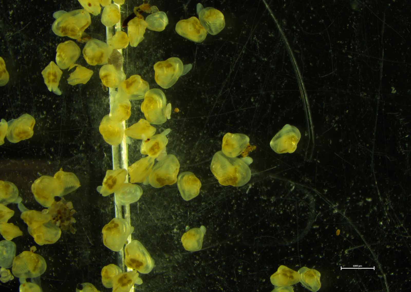 Durante varias semanas, comienza a desarrollar branquias, una pata y otras estructuras internas para convertirse en un mejillón juvenil. El juvenil, ahora completamente transformado, pero aún microscópico, dejará caer el pez y comenzará su vida en el fondo del arroyo. Sin que el pez lo sepa, acaba de servir como un taxi que transporta al joven mejillón a un nuevo hábitat lejos de su padre. Si el mejillón tiene la suerte de convertirse en adulto, puede vivir entre 20y100 años o más, dependiendo de la especie.