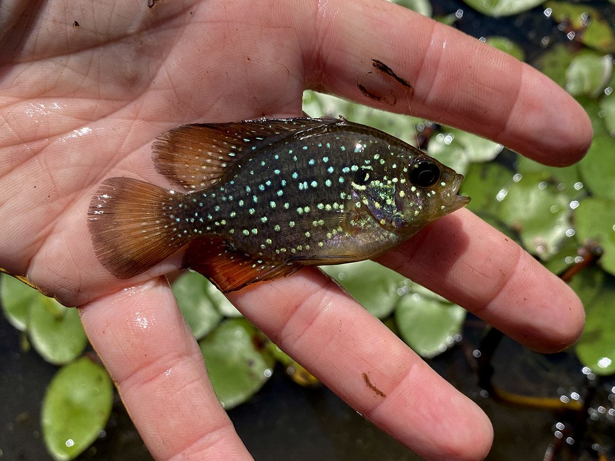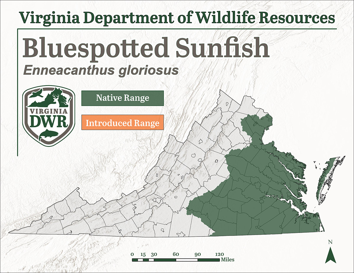 El pez luna de manchas azules es nativo de la mayoría de las aguas dulces de Virginia al este de Blue Ridge.