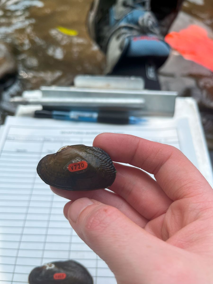 El Brook Floater es uno de los mejillones más raros nativos de la vertiente atlántica en Virginia. Actualmente se están llevando a cabo esfuerzos por parte del Centro de Pesca y Vida Silvestre Acuática de Virginia (VFAWC), el Centro de Conservación de Moluscos de Agua Dulce de Virginia Tech (FMCC) y el Instituto de Gestión de la Conservación (CMI) de Virginia Tech para restaurar esta especie. A partir de 2024, más de 4, se han liberado000 flotadores de arroyo propagados por criaderos en múltiples sitios a lo largo de la cuenca del río Potomac. Los biólogos y socios del DWR visitan rutinariamente estos sitios para rastrear el crecimiento y la supervivencia de los mejillones liberados, y para guiar futuros esfuerzos de restauración.