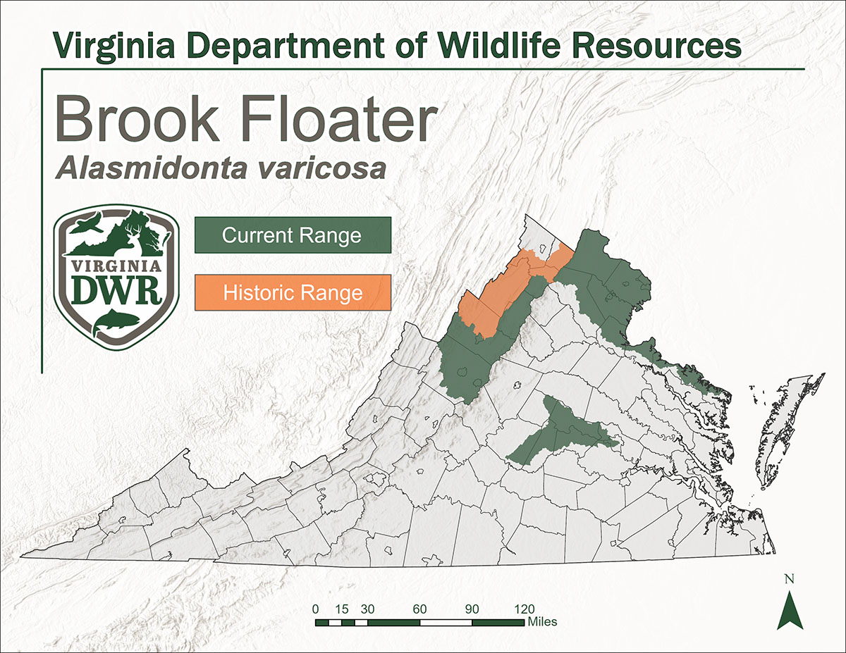 Los mejillones de agua dulce son organismos extremadamente amenazados. DWR regula la captura y posesión de mejillones de agua dulce que ocurren dentro del estado. Es ilegal capturar mejillones de cualquier agua continental de la Commonwealth, excepto según lo dispuesto en las secciones 291418y 291568 del Código de Virginia. Además, el flotador de arroyo está catalogado como una especie en peligro de extinción según la ley de Virginia. Es una violación de la ley estatal acosar, dañar o tomar el Brook Floater en Virginia.
