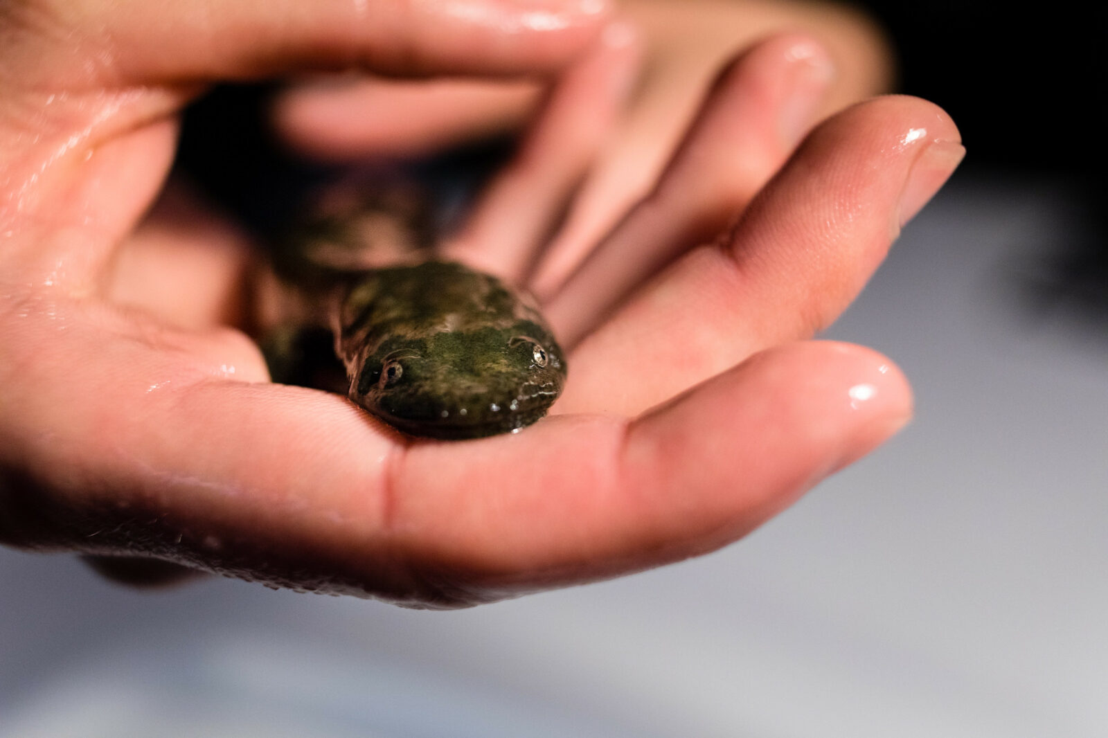 Hellbender del Este. Foto de Will Parson/ Programa de la Bahía de Chesapeake.