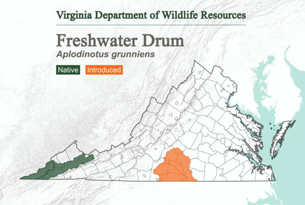 La base de datos de perfiles de especies del Departamento de Recursos de Vida Silvestre de Virginia sirve como repositorio de información para las especies de peces y vida silvestre de Virginia. La base de datos es gestionada y curada por el programa de Servicios Ambientales e Información de Vida Silvestre (WIES). Los datos del perfil de las especies, la información de distribución y la fotografía son generados por el Departamento de Recursos de Vida Silvestre de Virginia, las agencias estatales y federales, los titulares de licencias de recolección y otros socios confiables. Este producto no es adecuado para uso legal, de ingeniería o topografía. El Departamento de Recursos de Vida Silvestre de Virginia no acepta responsabilidad por datos faltantes, inexactitudes u otros errores que puedan existir. De acuerdo con los términos de servicio de este producto, usted acepta este descargo de responsabilidad.