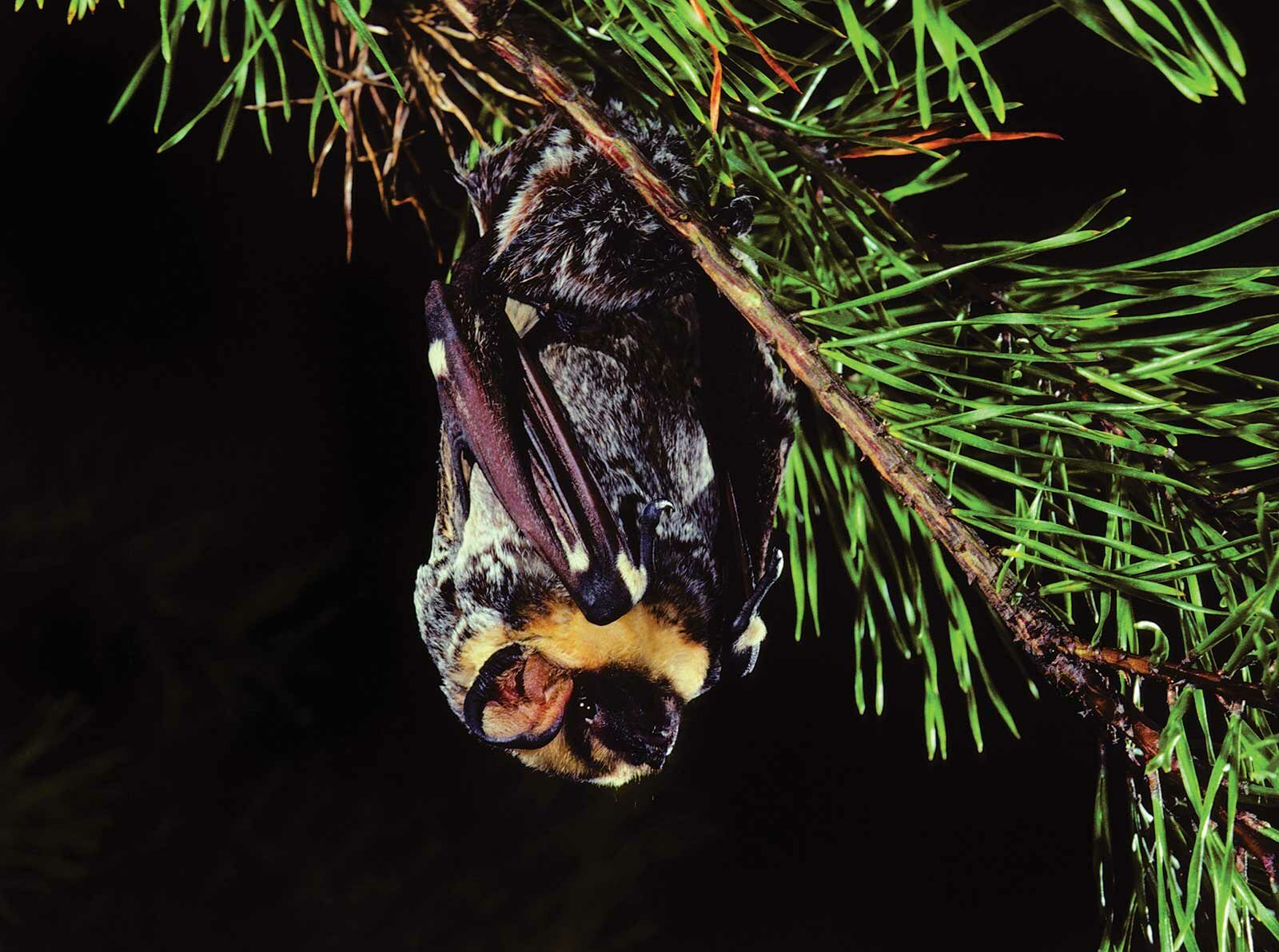 Murciélago canoso. Ilustración de Brittany Fernald.