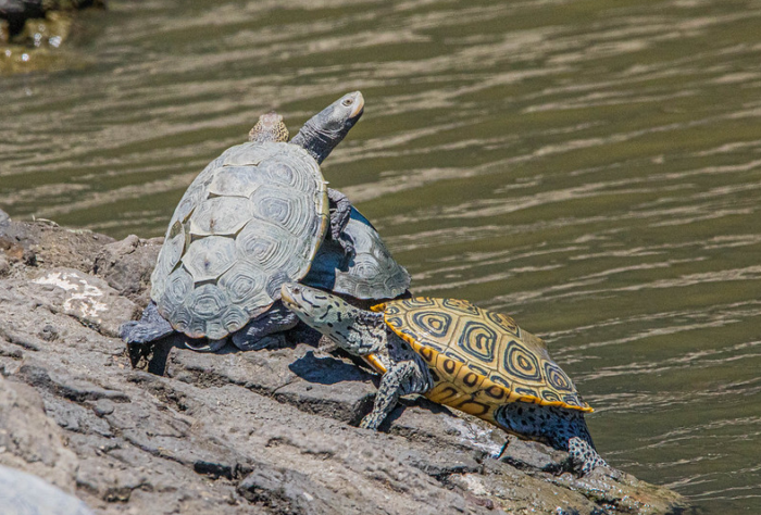 La tortuga dorso de diamante es la única especie de tortuga exclusivamente estuarina en América del Norte. Habita en aguas salobres, estuarios de agua salada y marismas de marea y a veces se puede ver en el Océano Atlántico.