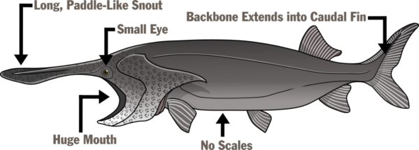 Vista de perfil de un pez espátula. Foto por ©Zach Adkins