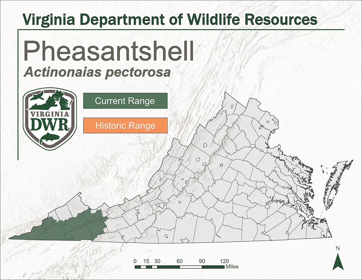 El caparazón de faisán se encuentra en toda la cuenca superior del río Tennessee en el suroeste de Virginia.