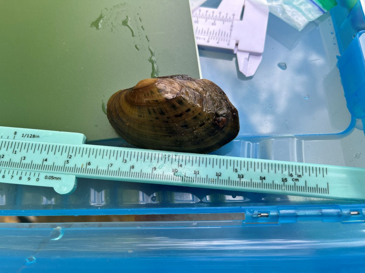 Un caparazón de faisán medido durante el estudio anual de Musselrama. Foto de ©Kayla Howard - DWR