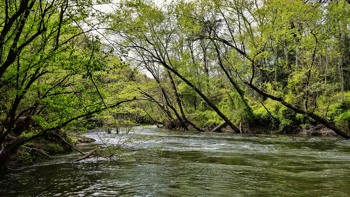 Un río Piedmont de Virginia con un hábitat de calidad para la lubina de boca pequeña.
