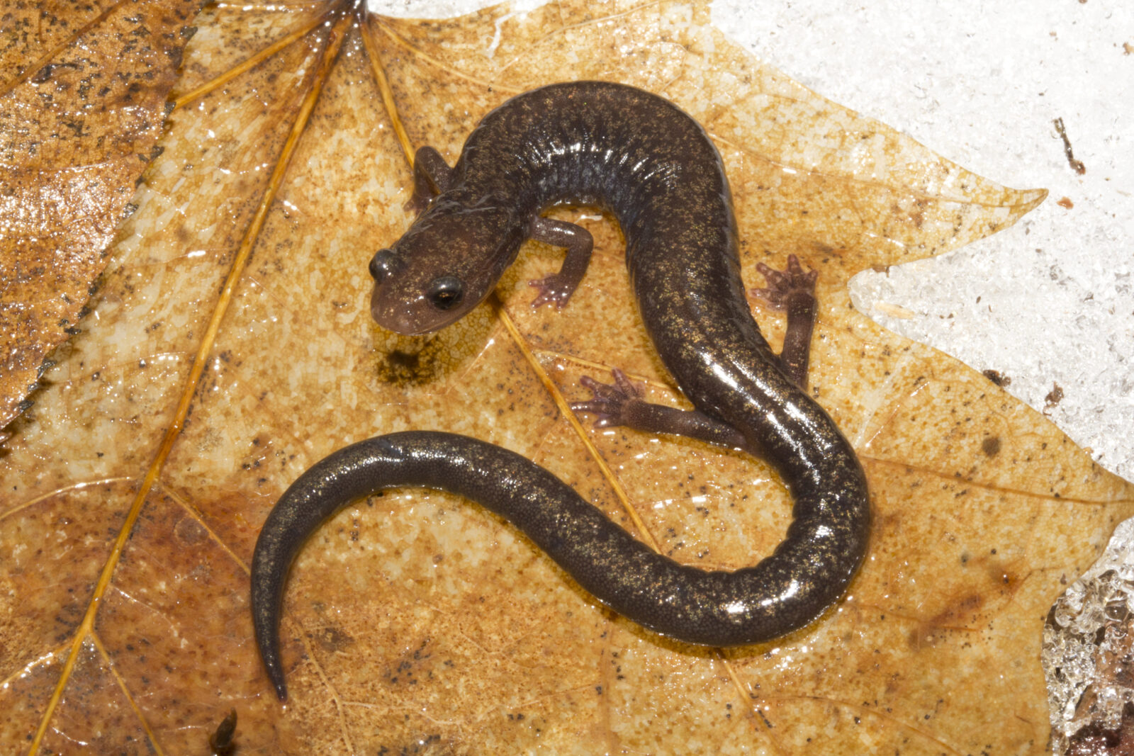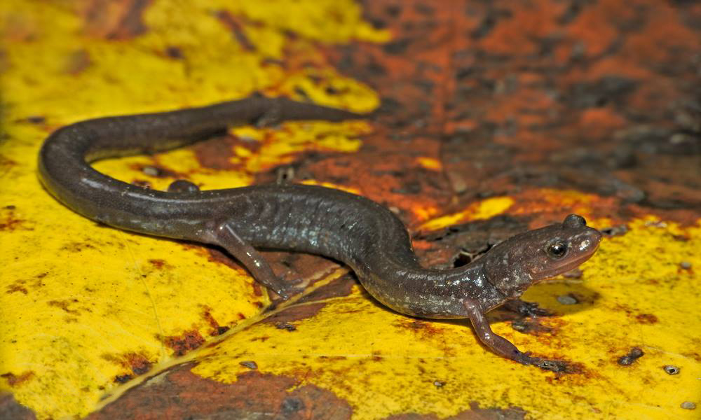 Una salamandra alargada con patas relativamente cortas. La cola de los adultos representa aproximadamente el 50% de la longitud total del cuerpo. El dorso es de color marrón oscuro a negro con cantidades variables de manchas blancas o cobrizas. El vientre es uniformemente oscuro con manchas claras en la garganta.